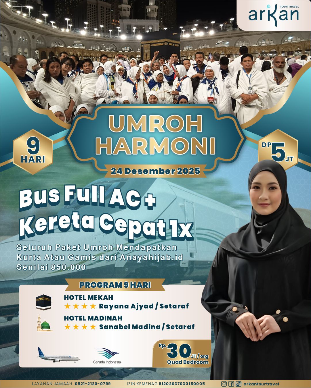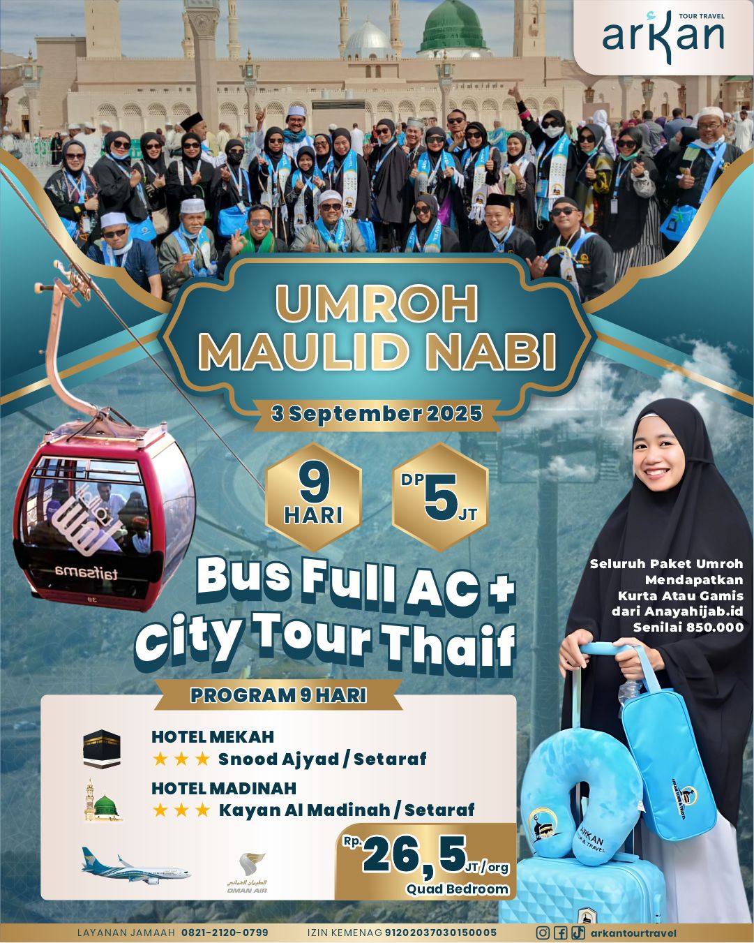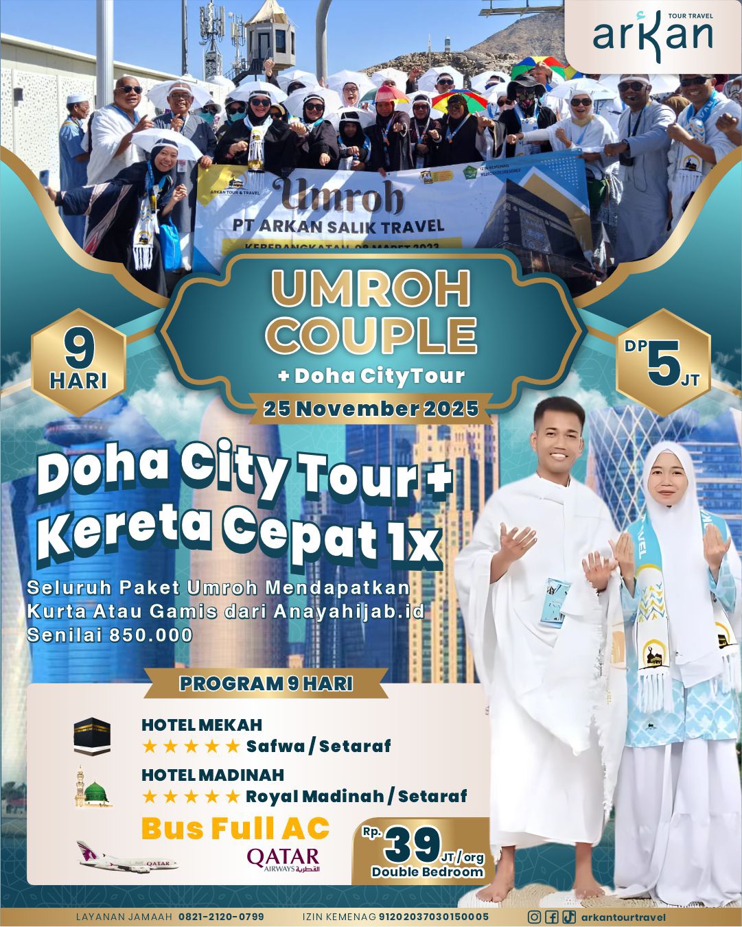 “Panggilan suci-Nya telah tiba. Jangan tunda lagi.”Bersama Arkan Tour Travel, wujudkan perjalanan ibadah Umrah yang nyaman dan penuh berkah.